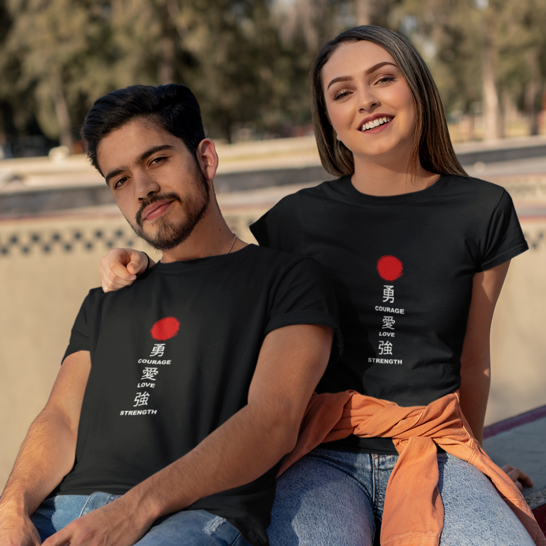 Some words don’t just translate — they transcend. This design brings together the timeless virtues (Yūki) for courage, (Ai) for love, and (Tsuyosa) for strength — each elegantly inked in Japanese characters that represent balance, resilience, and harmony.