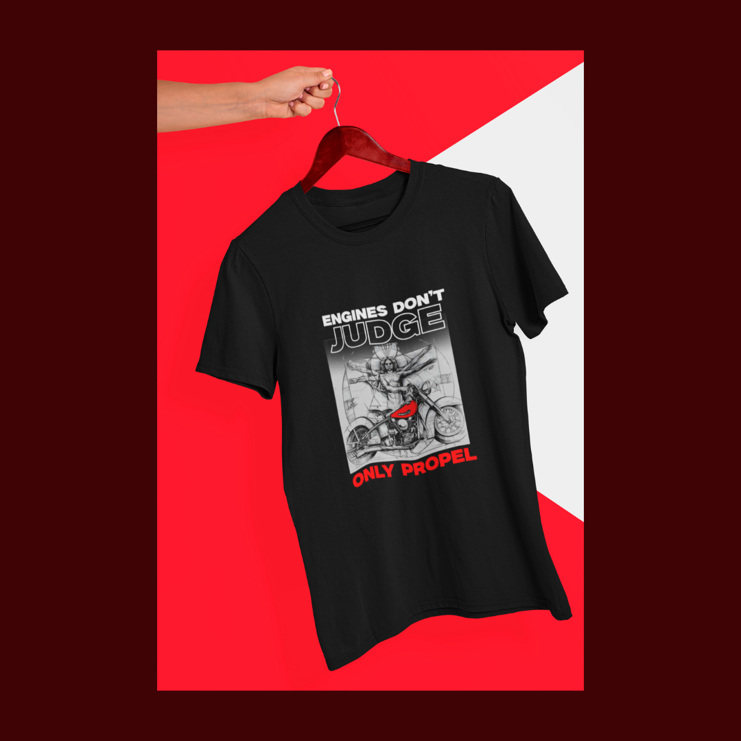 Perfect for bikers, racers, and grease-loving dreamers who live by horsepower, not opinions. Made from ultra-soft cotton with a rugged graphic that celebrates the spirit of freedom, torque, and raw motion — because real machines don’t discriminate, they just move.