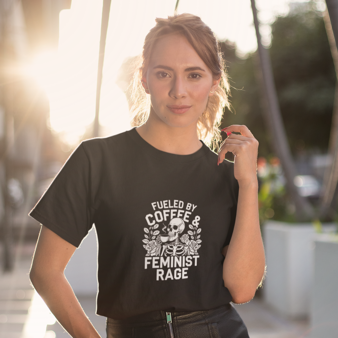 Perfect for those who balance their fierce passion for gender equality with a daily dose of caffeine. This shirt combines comfort and attitude, making it ideal for activists, coffee lovers, and anyone proud to stand unapologetically strong. Wear your energy and conviction with style and confidence.