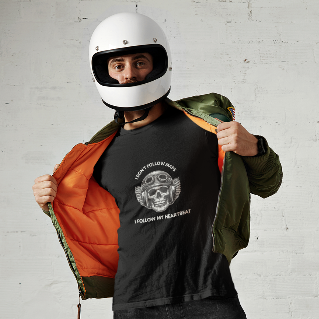 For those who ride with passion and intuition, this T-shirt says it all: “i don’t follow maps, i follow my heartbeat.” It’s for the free spirits who trust the rhythm of their own heart over any roadmap, choosing adventure and thrill over rigid plans. Crafted for comfort and style, this shirt is perfect for riders who see cycling as more than a journey — it’s a soulful experience guided by instinct and emotion. Wear it proudly and celebrate the ride that’s uniquely yours, driven by the beat within.