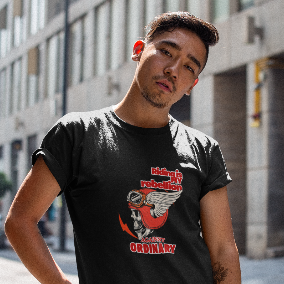 Break free from the mundane and embrace the extraordinary with this bold biker t-shirt. Featuring a design that celebrates the wild spirit of the rider, it’s a statement for those who ride not just for the thrill, but as an act of rebellion against the ordinary. "Riding is my rebellion against ordinary" captures the essence of courage, freedom, and individuality. Perfect for every rider who chooses the road less traveled and lives life on their own terms.