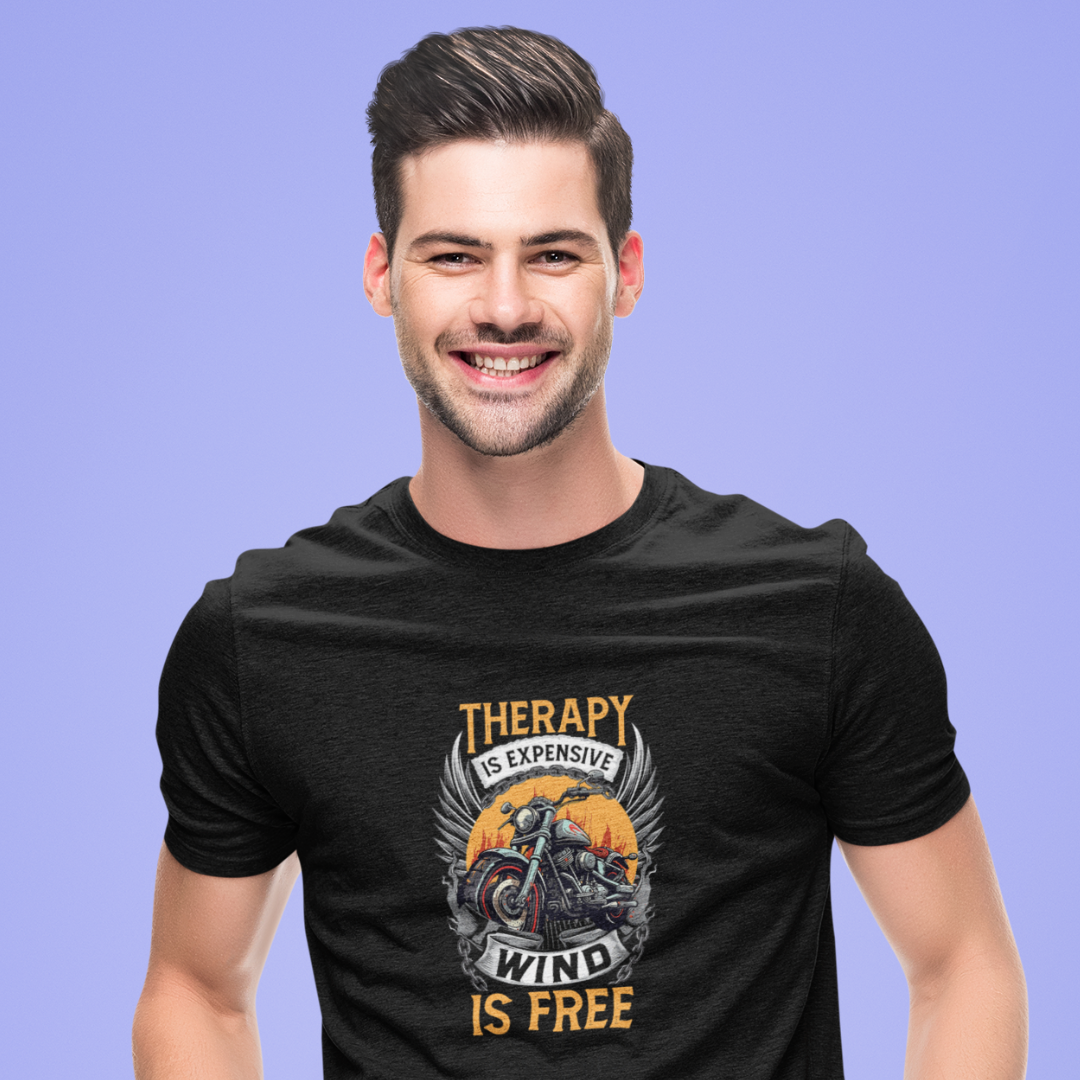 Skip the pricey sessions and feel the freedom of the open road instead. This tee is for those who know the best therapy comes with a roar of the engine and the rush of wind in their face. When life gets heavy, just ride—because nothing clears the mind and soothes the soul quite like wind therapy. Wear it proud and remind everyone that freedom is the cheapest—and coolest—medicine.