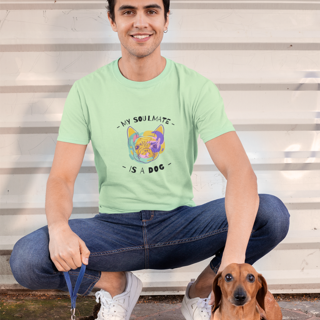 This t-shirt radiates warmth, loyalty, and unconditional love—all wrapped up in a simple, heartfelt message. Wearing it feels like a warm hug from your furry best friend, a reminder that sometimes the purest soulmate comes with fur, wagging tails, and endless affection. It’s perfect for dog lovers who believe that their four-legged companion is more than just a pet—it’s family, best friend, and soulmate all rolled into one. Soft, comfy, and full of love, this tee celebrates the bond that makes life sweeter.