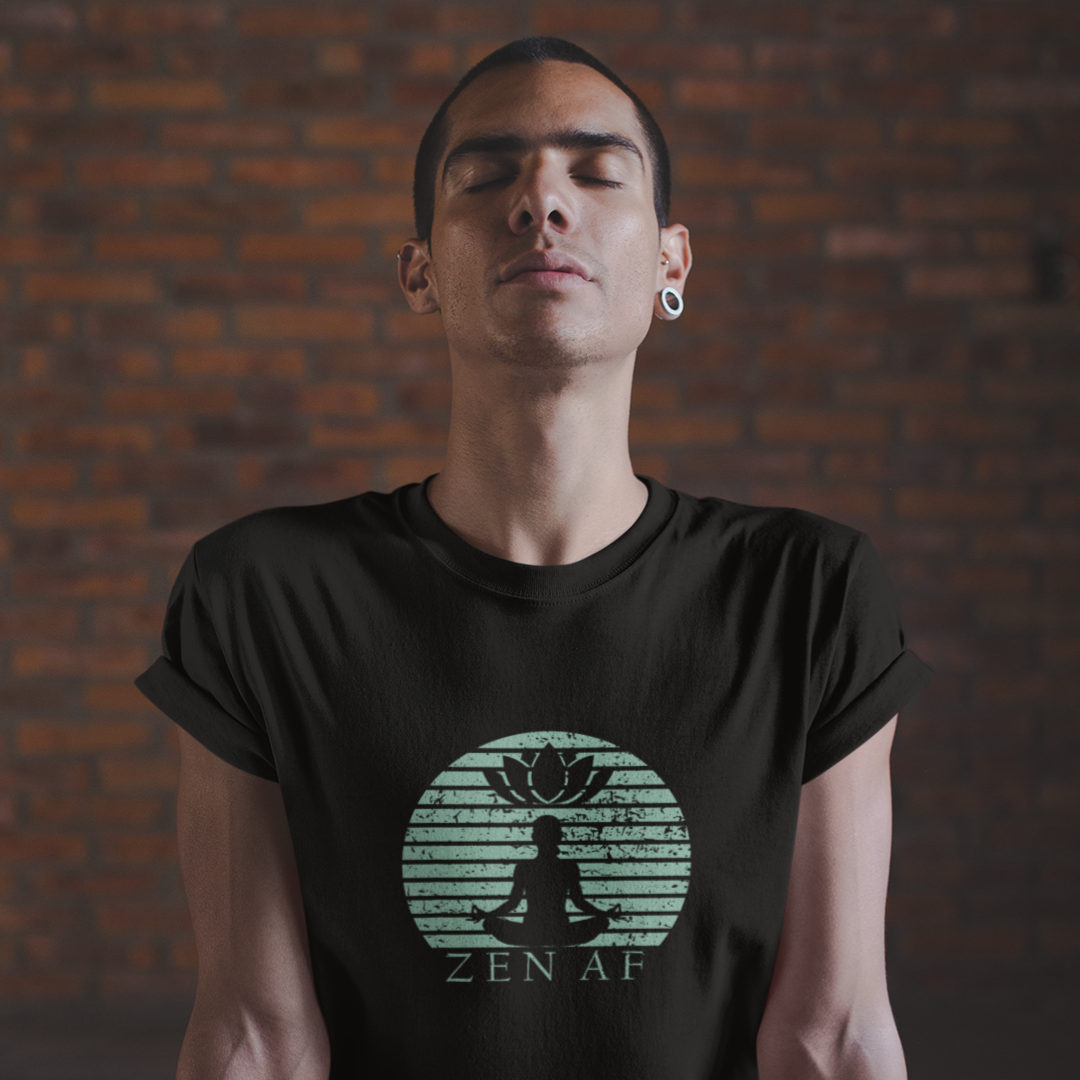 This shirt perfectly blends a modern, edgy vibe with a serene, mindful spirit. Made from soft, lightweight fabric, it offers comfort and breathability for your practice or casual wear. Whether you're striking a pose or just embracing calmness in daily life, this tee makes a confident statement about your zen attitude with a touch of humor.